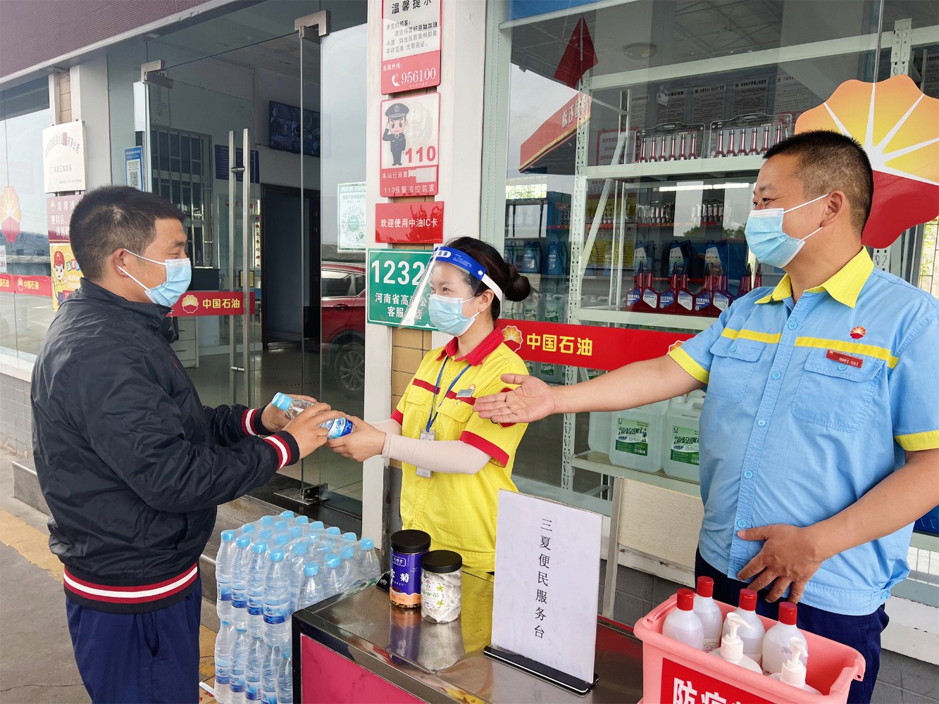 三門峽服務區加油站設置“三夏”便民服務臺。惠芳 攝