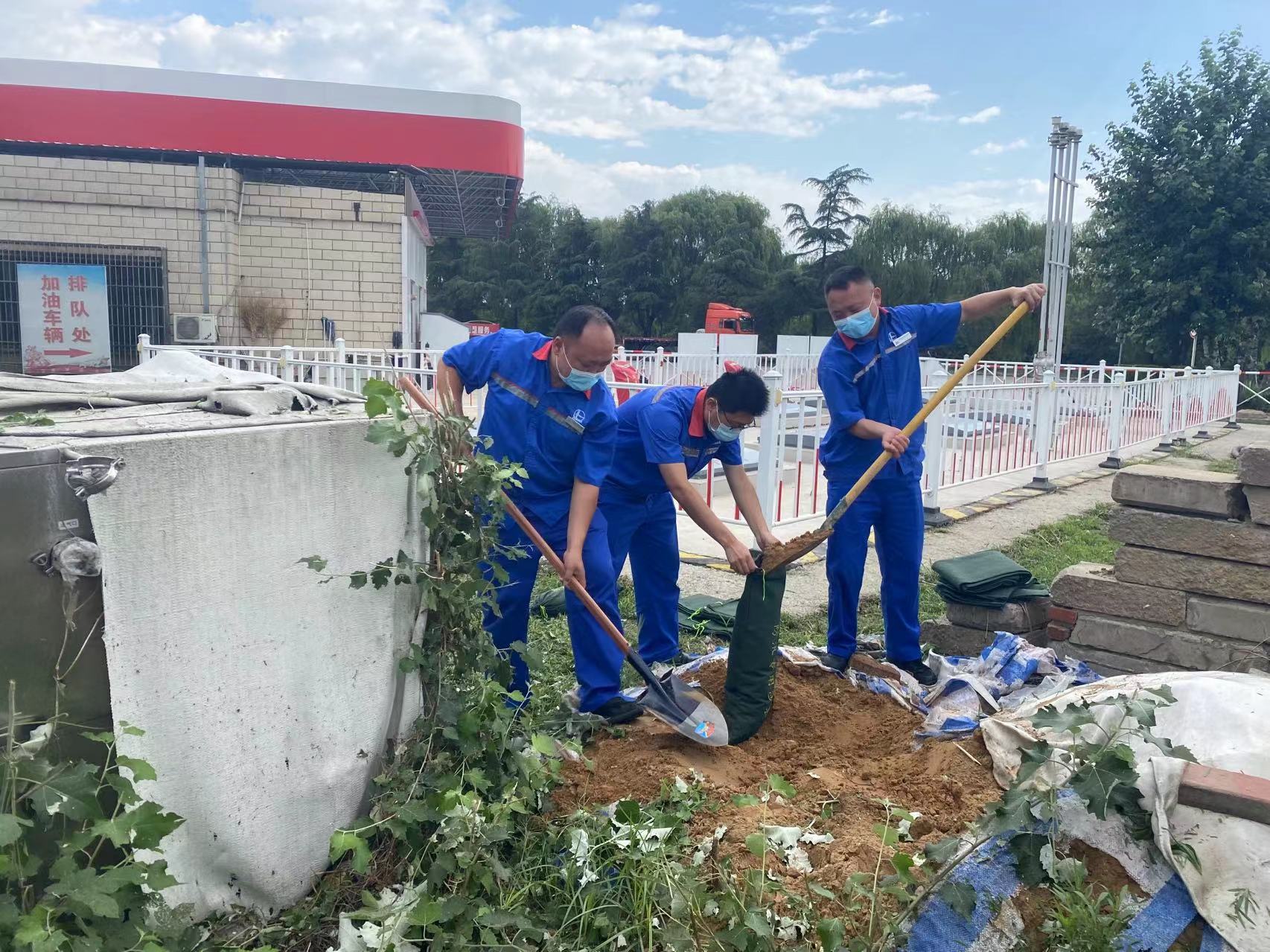 7月19日 許昌服務區加油站填裝沙袋備足防汛物資