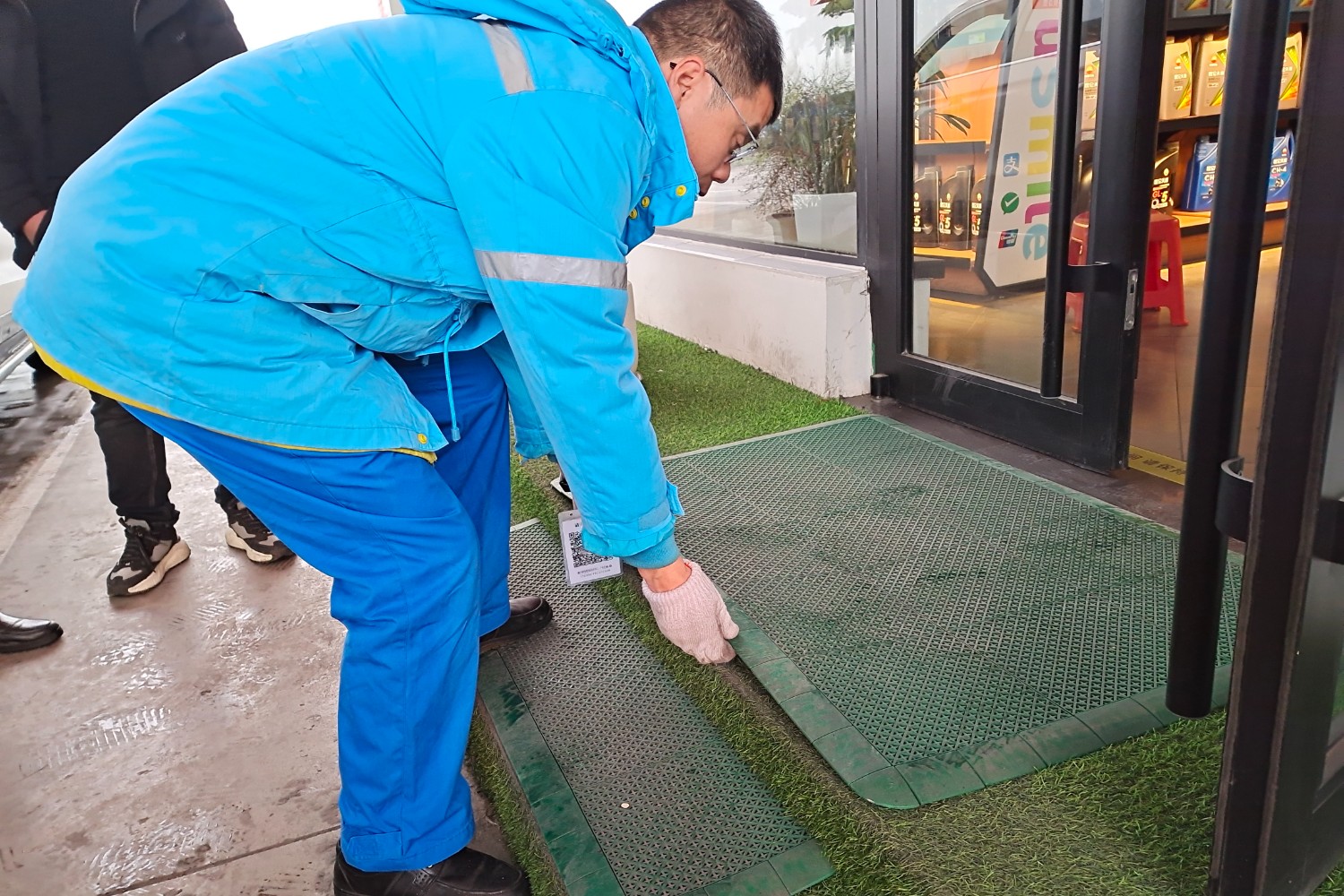 2月19日,洛陽服務區加油站鋪設防滑墊,保障司乘進出安全
