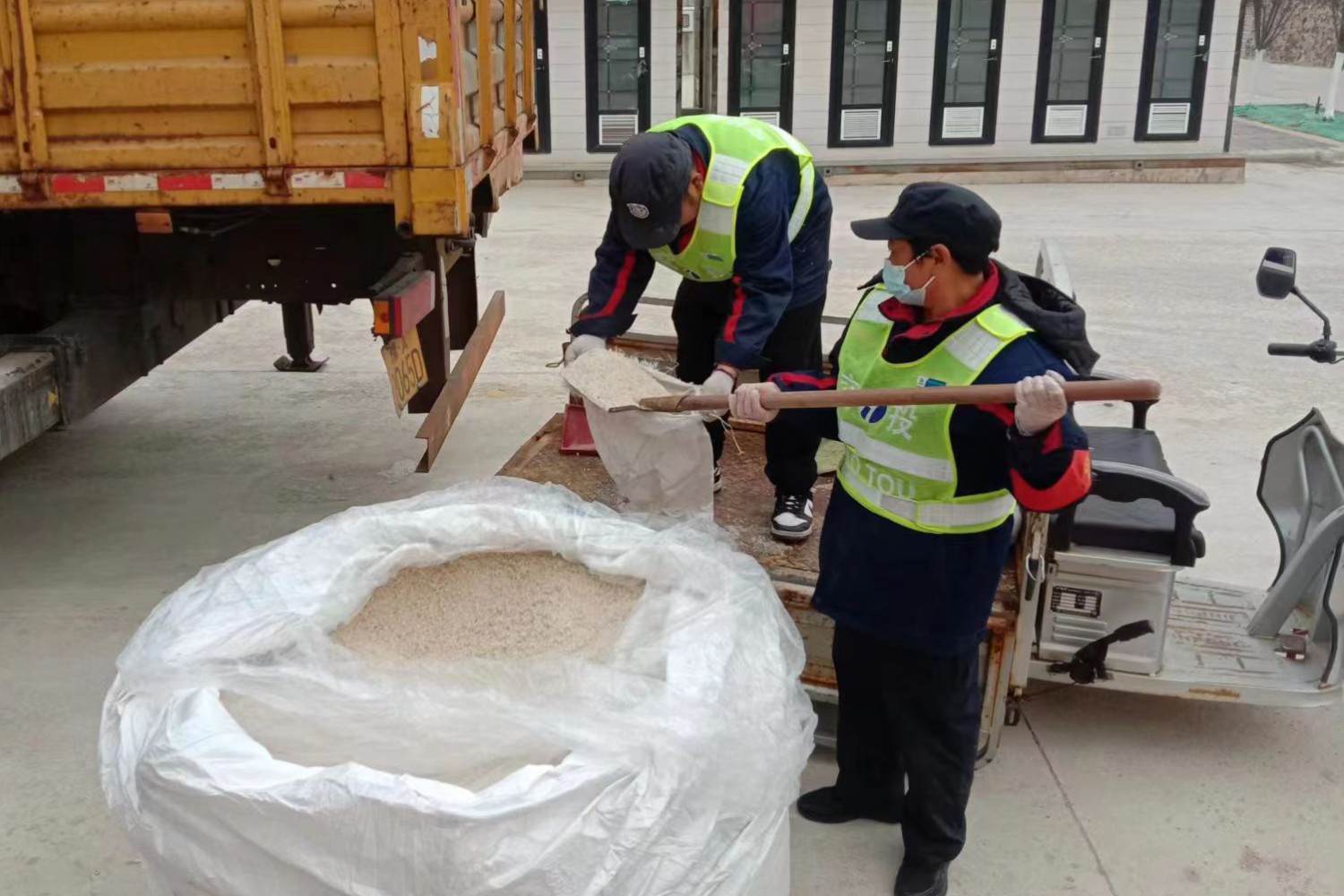2月19日,白云山服務區工作人員儲備融雪劑