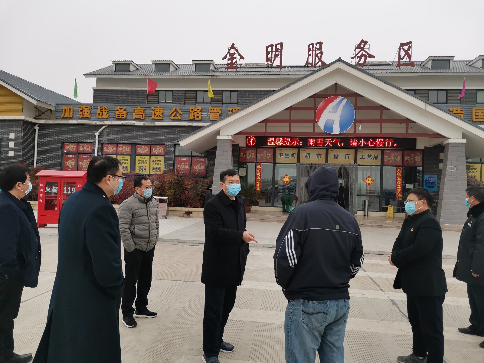 河南交通投資集團(tuán)黨委書記程日盛、副總經(jīng)理劉芮華等一行領(lǐng)導(dǎo)到金明服務(wù)區(qū)檢查指導(dǎo)疫情防控工作