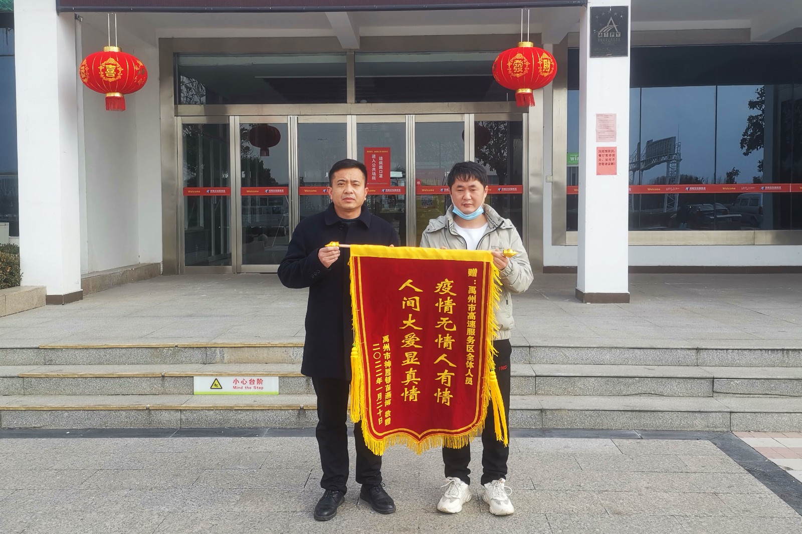 2022-02-08 作者:歷經(jīng)寒冬,方知春暖,總有一些愛,會穿過世俗紛擾遇到你,讓你感到溫暖。這些不期而遇的溫暖我們的記憶定格,服務(wù)區(qū)人傾力守護(hù)、為民服務(wù)的腳步永不停歇。2月7日,駕駛員苗先生專程趕到禹州服務(wù)區(qū),只為向工作人員送上一面寫有“疫情無情人有情 人間大愛顯真情”的錦旗。1月3日…