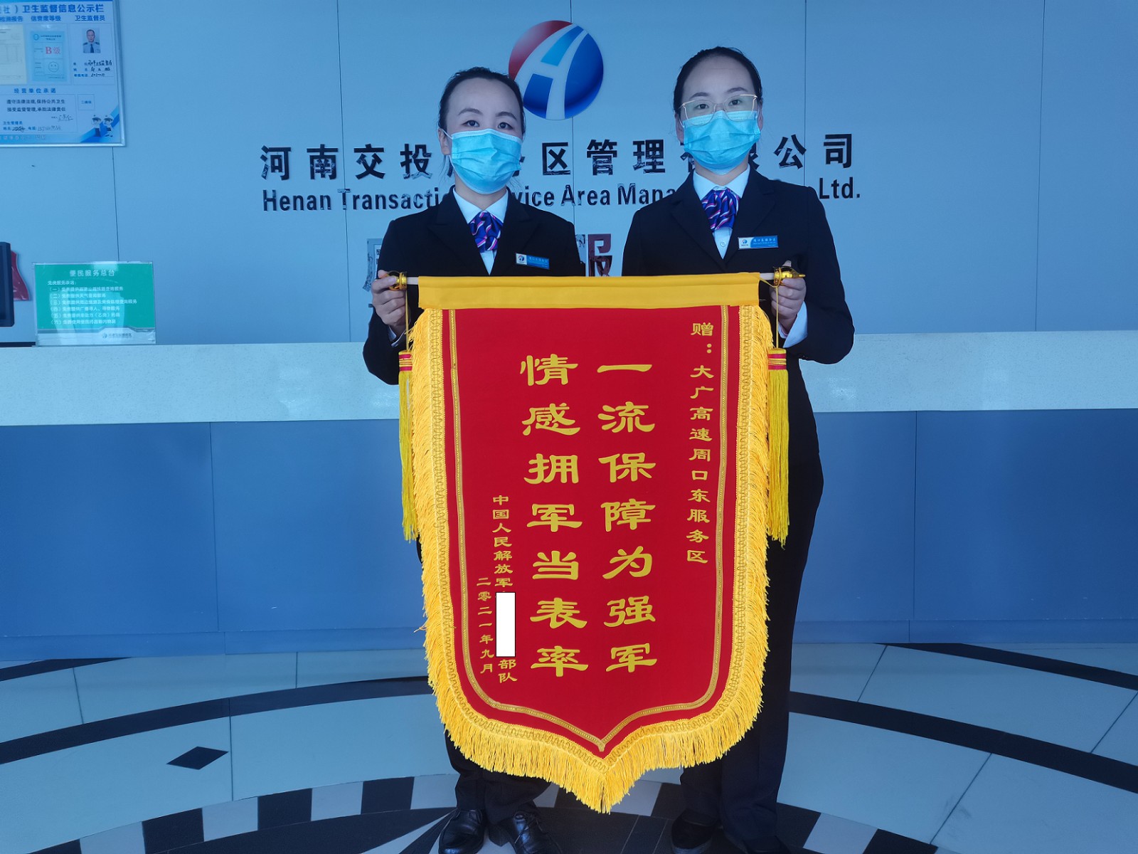 2021-10-13 作者:10月12日,周口東服務(wù)區(qū)收到福建省解放軍某部隊(duì)寄來(lái)的一面寫(xiě)著“一流保障為強(qiáng)軍 情感擁軍當(dāng)表率”的錦旗,隨錦旗一同寄來(lái)的還有一封感謝信。原來(lái)在河南720暴雨災(zāi)害搶險(xiǎn)期間,解放軍某部隊(duì)馳援河南兩次途經(jīng)周口東服務(wù)區(qū)進(jìn)行臨時(shí)休整及食宿,服務(wù)區(qū)針對(duì)部隊(duì)服務(wù)保障要求精心組織…