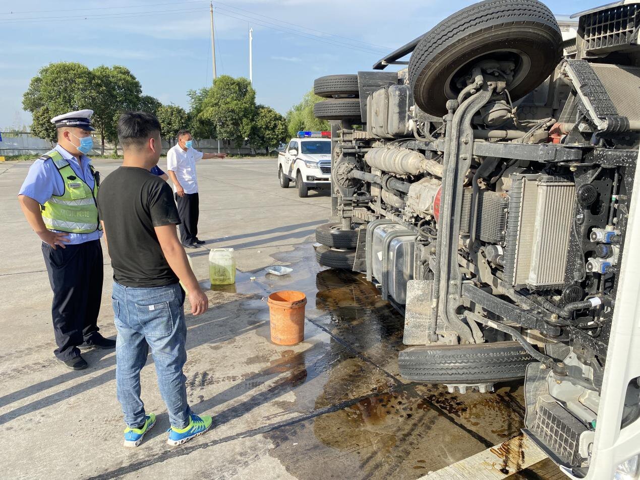 輕型卡車側翻漏油 項城服務區(qū)迅速處置