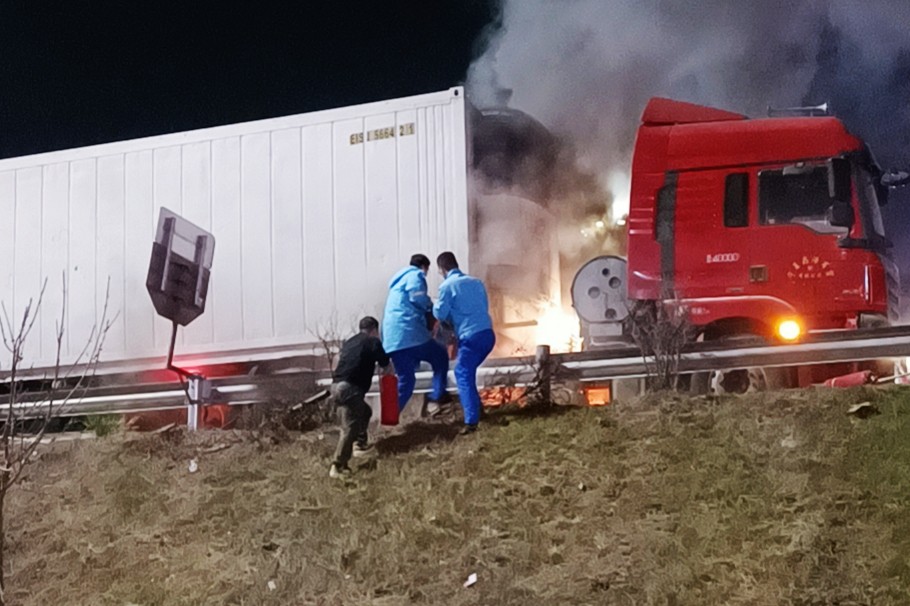 洛陽服務區、加油站妥善處置貨車自燃獲點贊好評