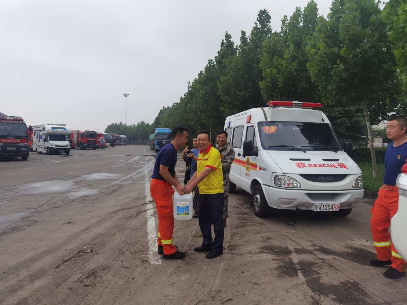 近日,河南省多地遭遇罕見持續性強降雨。受暴雨影響,河南部分地區交通通信中斷、農田被淹、水庫遇險,災情時刻牽動著人們的心。面對災情,洛陽服務區加油站全體人員保持高度重視,及時為過往司乘和救援車隊提供油品和服務保障,保證車輛出行通暢,為全省人民防汛抗災貢獻力量。7月22日下午6點,三門峽市50名消防官兵奔赴災區搶險救災,路過洛陽服務區時休息整頓。得知消息后,洛陽服務區加油站經理劉海衛從站內取來桶裝車用尿素,免費贈送給消防官兵。消防官兵對加油站的支持連連感謝,并表示一定會全力以赴,打贏這場搶險救災仗。